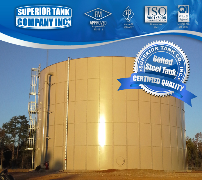 Gasket Type Bolted Steel Tanks. We supply American manufactured Gasket type Bolted Steel Tank from Superior Tanks Company Inc. Tough industrial rubber gaskets seals water seals water inside the tough steel panels. Epoxy powder coating oven baked in the factory provide consistent extremely tough corrosion protection for the steel panels. Our Gasket type tanks are excellent for storing drinking and industrial water. The tanks can also be used to store hydrocarbon type liquids (e.g. oil, diesel, etc) by using a special type of gasket custom designed for oil and other corrosive liquids . Special premium coating called Scotchkote can also be employed for these challenging liquids. This Tank type is easy to install and even easier to maintain and troubleshoot. It is designed to last decades.